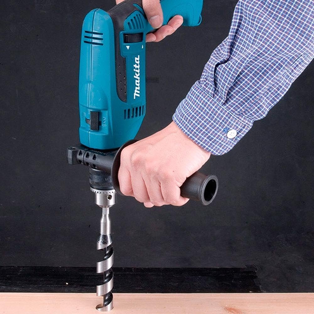 A Furadeira de Impacto HP1640 da Makita é indicada para profissionais do setor de marcenaria, construção civil e serralherias. A HP1640 é ideal para realizar trabalhos de perfurações, com 760 watts de potência em uma ferramenta inovadora. Possui seletor de função, entalhe para dedos, com velocidade que vai de 0 a 2800 rpm e mandril de 13mm (1/2″), com capacidade de perfuração de: aço até 13mm, madeira até 30 mm e concreto até 16 mm. Conta com cabo emborrachado e saliências na parte inferior para facilitar a pegada, proporcionando segurança durante o uso. Acompanha punho lateral para maior estabilidade durante o uso, chave de mandril e limitador de profundidade para controle da perfuração.